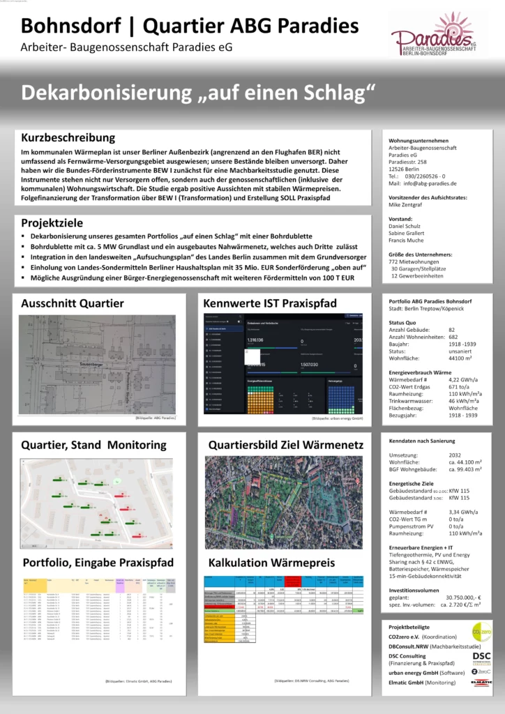 Tauschen Sie sich mit Kollegen über geplante Umsetzungen und deren Zukunftspotenziale detailliert aus. Diskutieren Sie, welche sicheren und bezahlbaren Lösungen sich bei der Entwicklung energieeffizienter und dekarbonisierter Quartiere bewährt haben und bewähren werden. Niemals zuvor gab es solch günstige Möglichkeiten, Fördermittel einzuwerben.